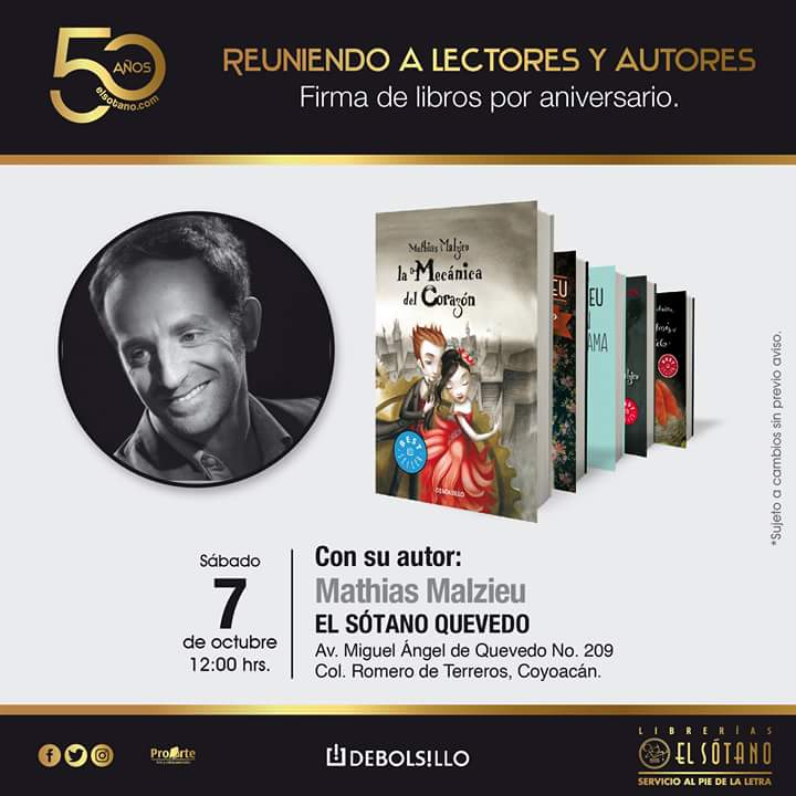 Por cierto querida librería el sótano, hicieron felices a muchos fans, admiradores de Mathias y se les agradece, pero también está lo contrario debieron darle más difusión a su evento, muchas personas fueron al lugar y no tenían boleto pues muchos (as) apenas se enteraron, vi como algunas personas intentaban una y otra vez desde su dispositivo haber si liberarán boletos, ustedes no vieron la cara de decepción y algunos se retiraron del lugar sin tener respuesta de los organizadores , algunos si se esperaron pues los veíamos a través del vidrio en la calle.